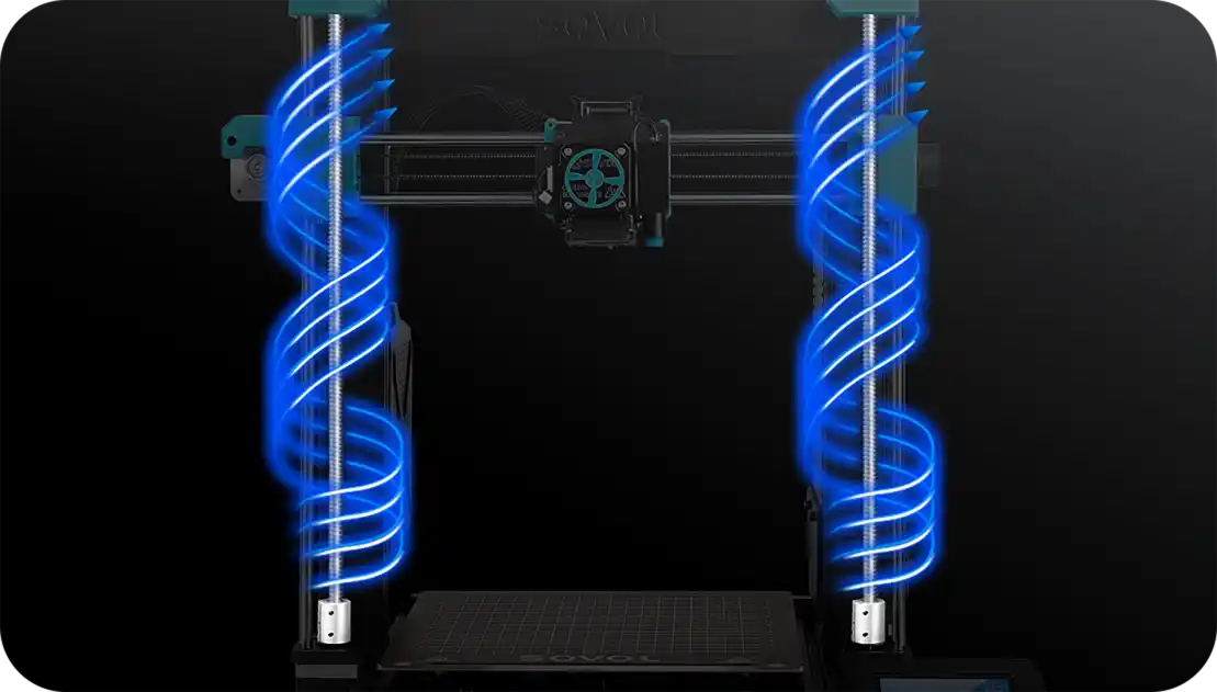 Dual Z-axis screws and stepper motors improve the accuracy and precision of nozzle’s vertical movement with a specified Z-axis accuracy of 0.001mm.